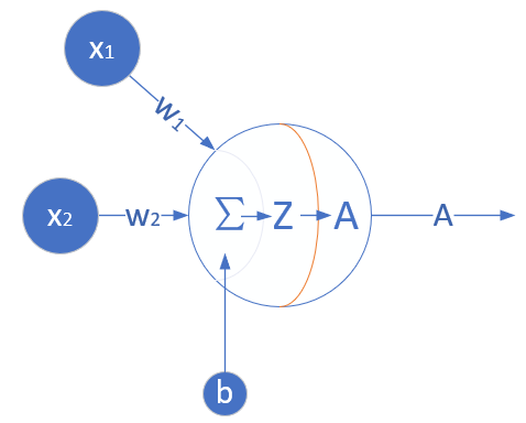 与上一章的网络结构图的区别是,这次我们在神经元输出时使用了分类函数,所以输出为 A,而不是以往直接输出的 Z。