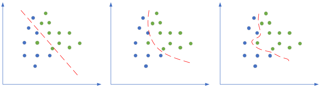 图16-2 分类任务中的欠拟合、正确的拟合、过拟合