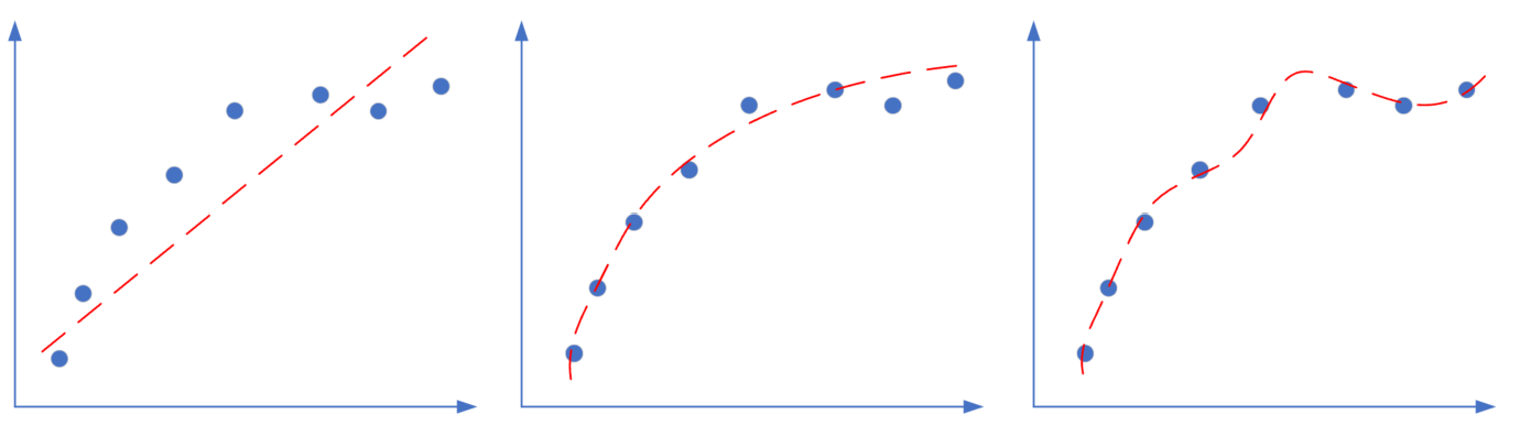 图16-1 回归任务中的欠拟合、正确的拟合、过拟合